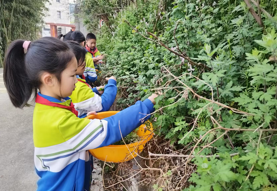 房县新闻网讯 通讯员 吴传香 报道:清明时节艾草香,文化传承正当时。4月2日,军店镇月明小学的学生当起了“小农人”,在老师的带领下择青、洗青、做青,体味美味,全方位参与青团的诞生过程。