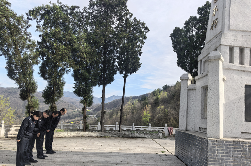 房县新闻网讯 通讯员 孙阳 报道:为缅怀革命先烈,弘扬忠诚警魂,同时做好节日期间山林防火与烟花爆竹安全管理工作,4月3日,沙河派出所组织全体民辅警前往五塘烈士陵园,开展清明祭扫暨安全宣传活动。