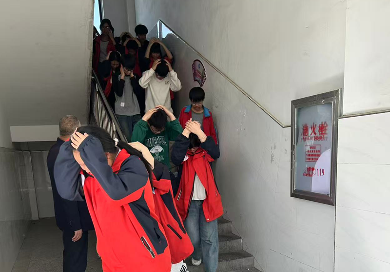 警报响起后,各班教师迅速组织学生用湿毛巾捂住口鼻,弯腰低姿沿预定疏散路线,快速、有序撤离至操场安全区域。各班级立即清点人数,逐级上报现场情况,整个疏散过程迅速规范,无拥挤、无滞留。