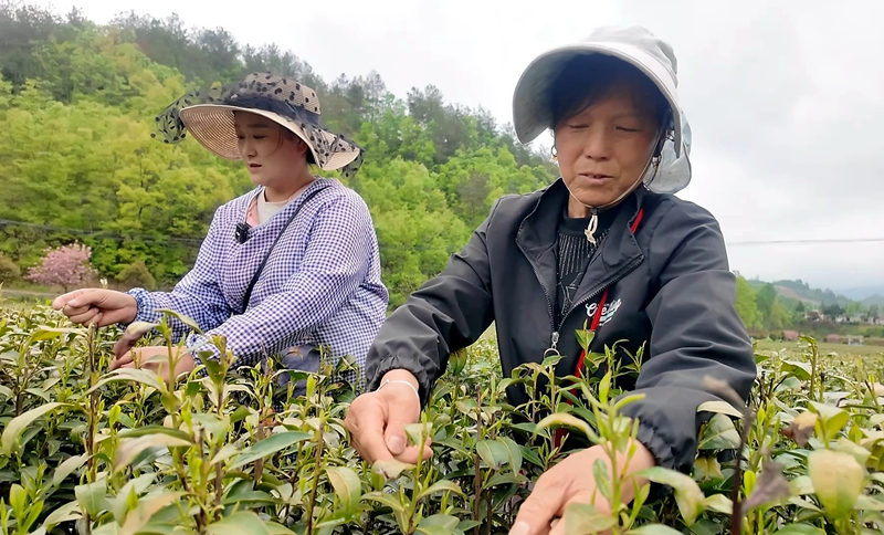 “每天早上把娃子送到学校去了,回来就到茶地里来采茶,一天大概能摘2斤多,挣到100多块钱,既能顾家又能挣到钱,还挺好的。”采茶工谢锐说。