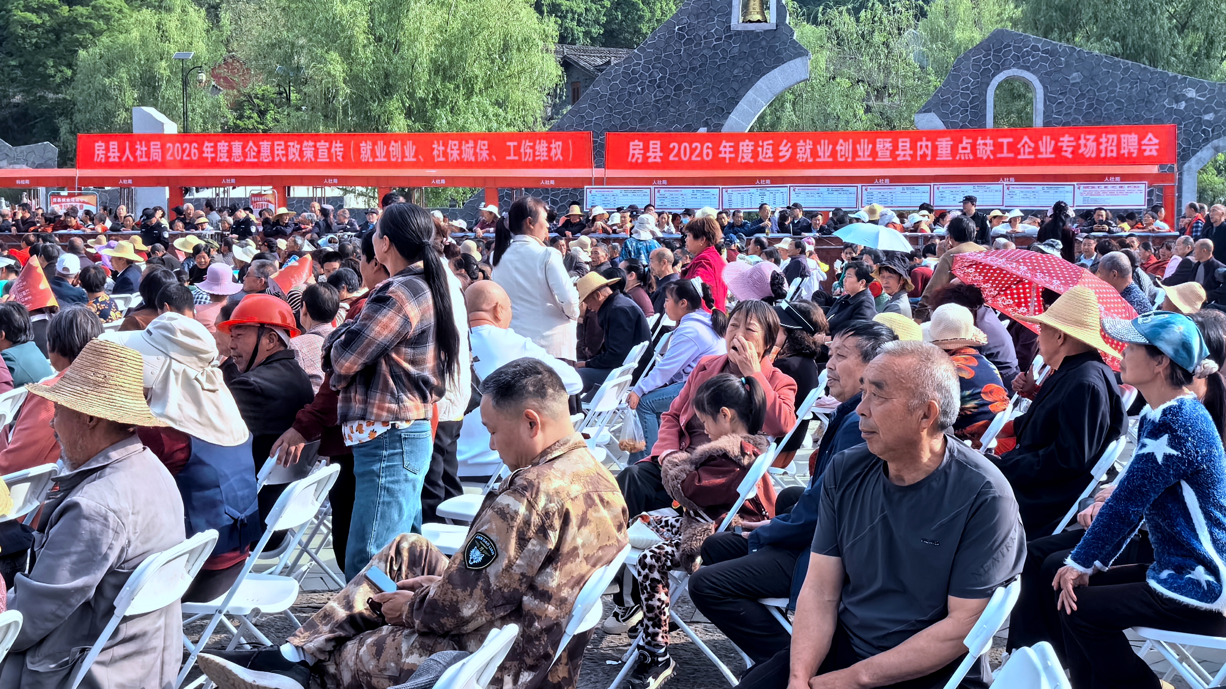 房县新闻网讯 通讯员 童旭炎、唐波 报道:为深入推进稳就业保就业工作,精准搭建求职者与县内重点企业对接平台,切实把就业岗位、惠民政策送到群众身边,4月19日,房县人社局联合军店镇人民政府,结合“我们的中国梦 文化进万家”荆楚红色文艺轻骑兵文艺惠民演出活动,在军店镇显圣殿广场成功举办2026年返乡就业创业暨县内重点缺工企业专场招聘会,同步开展惠企惠民政策集中宣传,活动取得良好成效。