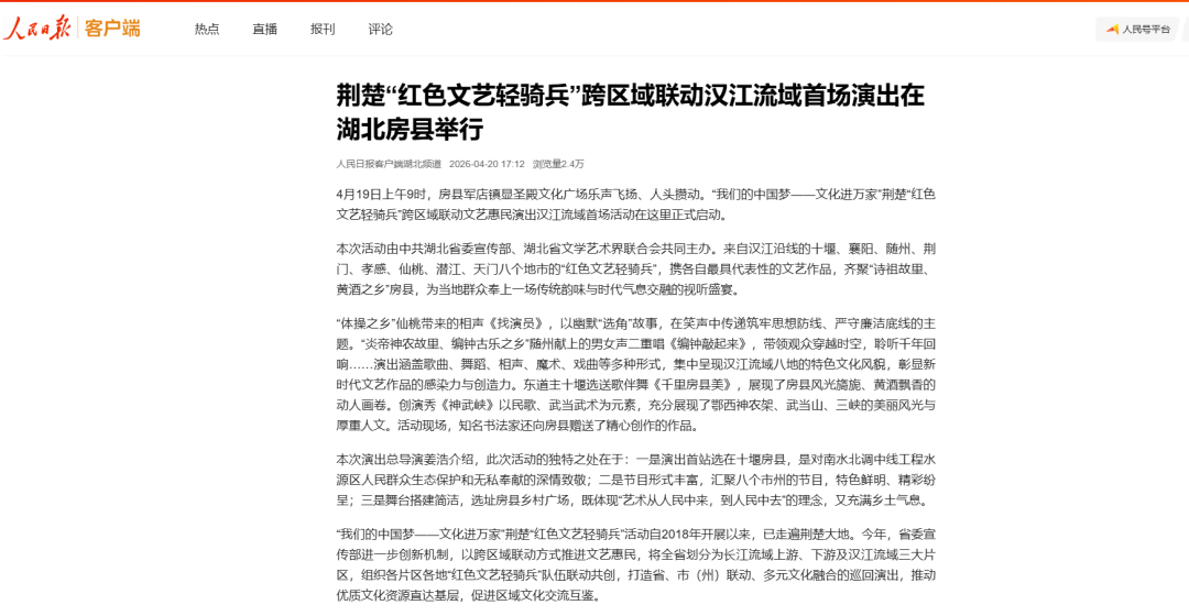 《荆楚“红色文艺轻骑兵”跨区域联动汉江流域首场演出在房县举行》