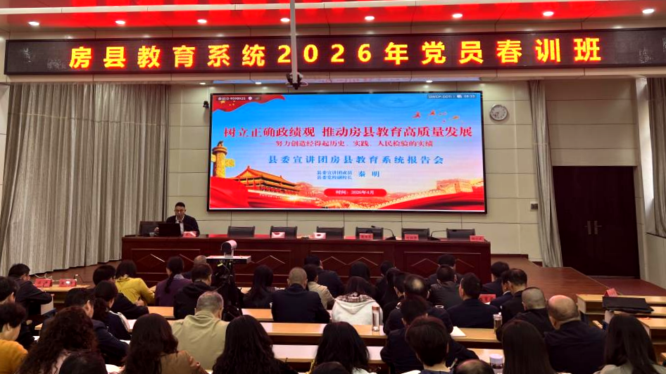 房县新闻网讯 通讯员 吴娴 张青华 报道:4月24日,房县教育系统2026年党员春训活动在房县实验小学阶梯教室举办,本次春训活动以“树立和践行正确政绩观,引领教育高质量发展”为主题,全县各相关学校同步设置分会场。