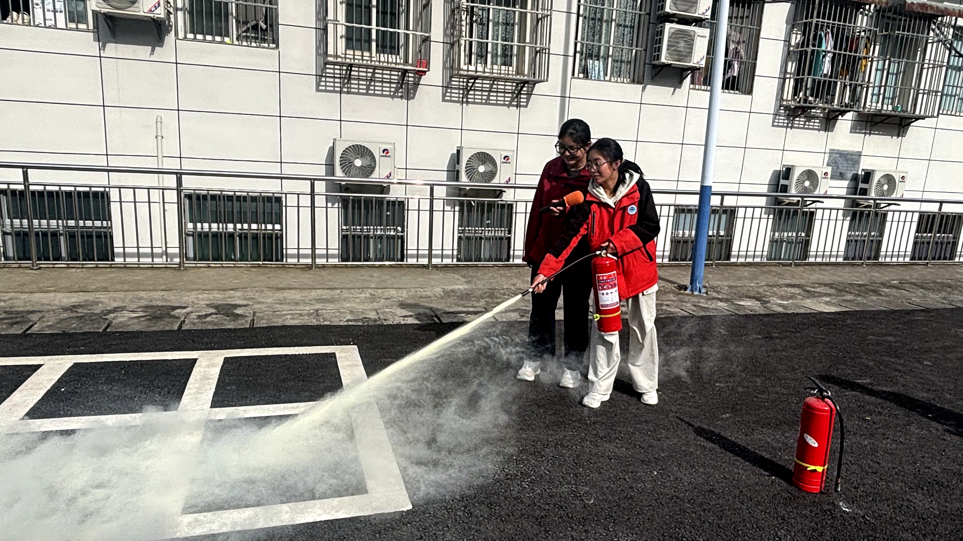 活动还现场开展消防安全知识讲解,重点演示了灭火器“提、拔、握、压”的核心操作步骤,详细讲解了火灾初期扑救的技巧、火灾逃生的注意事项,以及日常校园消防安全隐患排查的重点。并邀请学生代表亲手实操,近距离体验灭火器灭火流程,切实掌握消防器材的实际使用技能,确保每位参与者都能熟练掌握灭火器使用方法,做到“懂消防、会操作、能应急”。