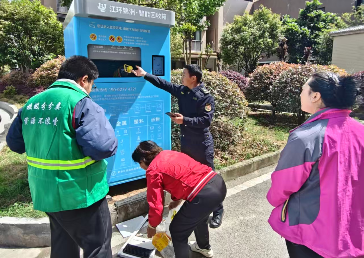 活动现场设置宣传展台,通过图文展板、发放手册、入户讲解、互动体验及智能回收箱现场投递等方式,向居民讲解可回收物分类标准、投放要求和回收流程。针对居民日常分类中的疑惑,工作人员逐一解答,帮助掌握正确方法。为提升参与积极性,居民将可回收物带到现场,使用智能回收箱投递成功后,可获环保垃圾袋一捆和厨余垃圾沥水篮。智能回收箱自动称重、金额秒到账的便利得到居民认可。“以前旧衣物堆着占地方,现在能换零花钱和实用礼品,太方便了!”戢阿姨说。不少家长带孩子参与,在实践中传递环保理念。