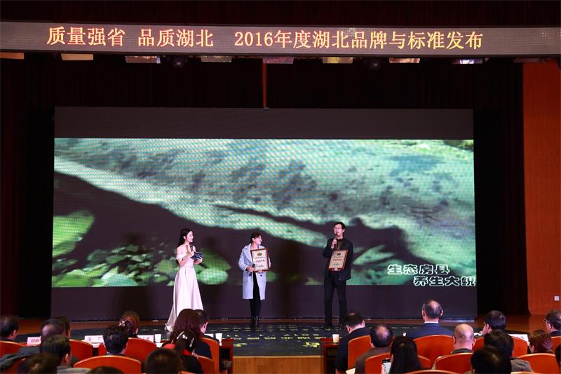 房县新闻网讯 通讯员 薛渊 报道: 日前,在由省质量强省工作委员会办公室、省质监局、省质量协会、省标准化协会、湖北电视台联合举办的“质量强省品质湖北——2016年度湖北品牌与标准”发布会上,“房县娃娃鱼”被国家质量监督检验检疫总局授予国家地理标志保护产品。副县长李弘弢参加领奖仪式并领取奖牌。