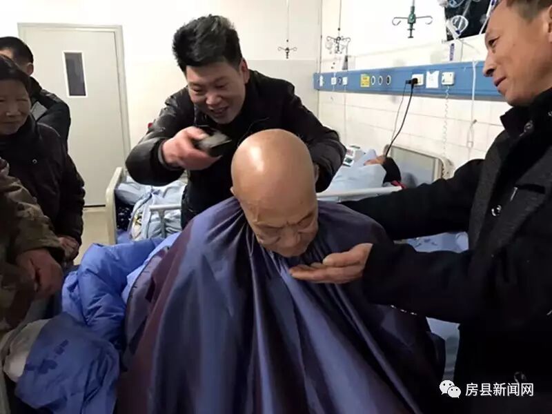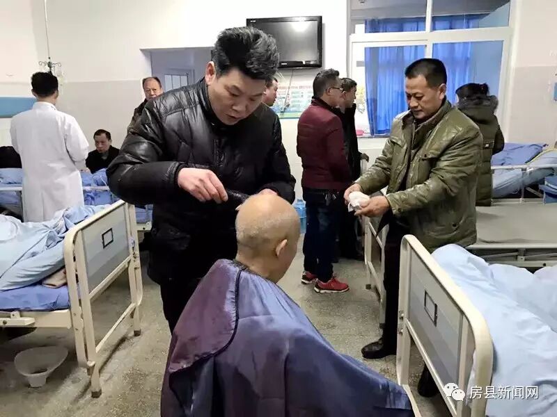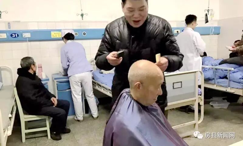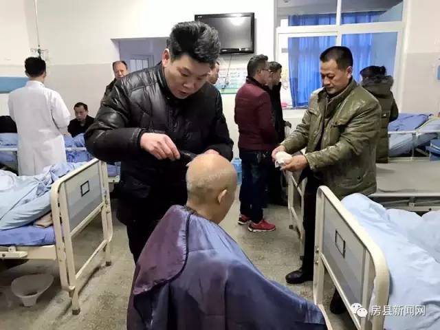 县医院心血管二病区十一号病房,有两位行动不便的高龄患者,想理发剃须把自己收拾干净利落,过个快乐的新春佳节,可是,现在对于生意火爆的理发行业来说,真是一寸光阴一寸金。抱着试试看的心态,病房里的小柯拨通了房县新华书店道子口FK美发店的曾老板的电话,没有想到的是15分钟后,曾老板就出现在大家的面前。