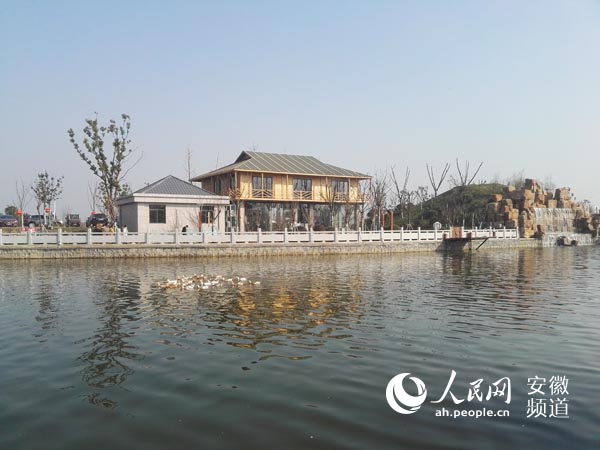 汽车沿着公路,行驶至姜寨镇坡寨村杨楼村时,拐上乡村小路再走两分钟,两种完全不同的景致,呈现在这片皖北土地上。绿色栅栏外,是一片灰色、未经修饰的北方农村,河边散落的枯枝落叶透出冬日的萧瑟。而栅栏内,却处处透出精致,道路齐整,绿意渐浓,碧波荡漾的清渠中,一群鸭子在惬意地游来游去。