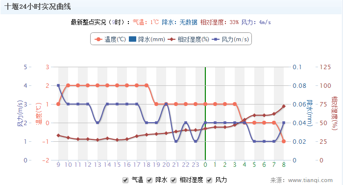 今日十堰天气概述: 十堰今天天气:小雪,东风 1级,全天气温1℃~-2℃,当前温度-0.6℃。十堰明天天气:小雨,无持续风向 微风,全天气温5℃~-1℃。