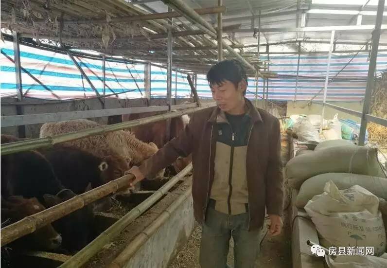 2016年3月,房县财政局驻村工作队进村后了解了他的情况后,驻村第一书记、房县财政局副局长蔡教弘多次上门和吴高明一起规划、研究,在充分考虑实际情况的前提下,确定了发展养殖业的思路。吴高明在工作队的帮助下一边盖牛圈,一边申请10万元扶贫贷款,并着手购买牛。2016年5月贷款下来后,吴高明从本镇养牛大户张安民那里购买了7头小牛。
