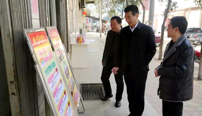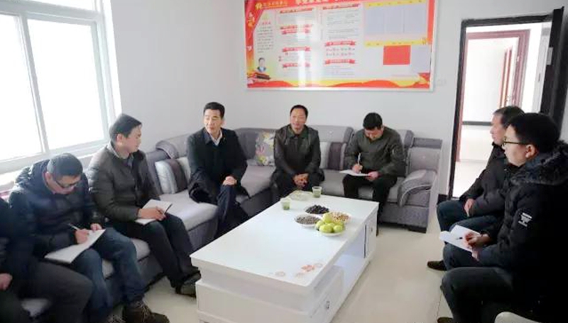 房县农商行董事长刘玉山(左一)指导大木支行“春天行动”工作