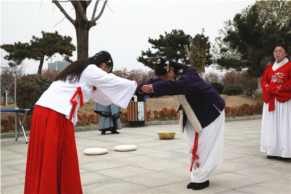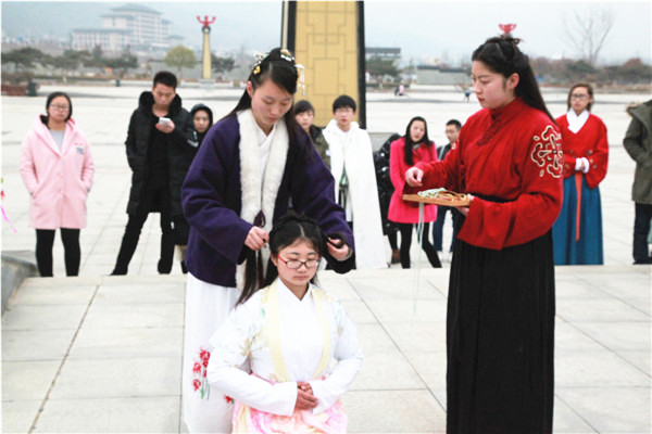 6日,房县章华汉服社(以下简称房县汉服社)在诗经广场举行了一场新年聚会活动,来自房县各地,以及十堰市区、丹江口市、竹溪县等地共二十余名热爱汉民族传统服装(简称汉服)和汉民族传统文化(简称汉文化)的青少年参加了本次活动。本次活动分为两场,上午游览观音洞景区。在观音洞景区的道观中,大家一起与道长交流,道长们对我们的社团表示了肯定,并提醒我们要将汉服与传统文化相结合,服饰与文化共同传承与复兴。