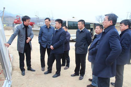 纪道清一行来到马兰至温泉改扩建工程(简称环城北路)规划起点红塔镇李湾村,就道路线形优化及改线涉及的征地拆迁等工作进行现场调研,并到建设中的谢湾桥项目工地督导工程进度和安全生产工作。
