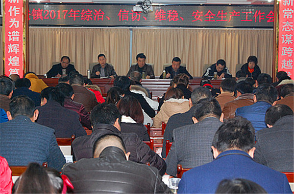 在会上,与会人员一起认真学习了省、市、县综治维稳、信访及安全工作会议精神,安排部署当前综治、信访维稳及安全工作。会议要求全镇干部职工及村干部做到思想认识到位,问题解决到位,事件处理到位,人员稳控到位,安全监管到位,宣传引导到位等“六个到位”。会议强调实干就是能力,落实才是水平。该镇2017年全面推进“三官巡村”工作机制,以创建“平安城关”为目标,建立健全工作实施方案,完善应对措施;建立信访工作协调联动机制,严格落实值班和信息报送制度,严格落实责任考评追究制度。全镇上下迅速行动起来,通过“一线工作法、蚂蚁搬石头法和蜘蛛织网法”,围绕交通安全、网格化建设、平安创建、信访维稳、社会救助等工作重点,携手并肩,齐心协力,锐意进取,真抓实干,在全镇营造和谐、安全的良好氛围。