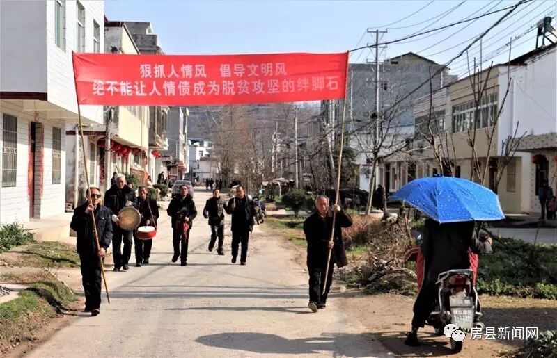 25日军店镇上茅坪村委会锣鼓喧天,“狠刹人情风,倡导文明风,绝不让人情风成为脱贫攻坚的绊脚石”横幅迎风招展,为“人情新风带头人”送匾队伍整装待发。这一场景是军店镇治理人情风落到实处的又一新举措。