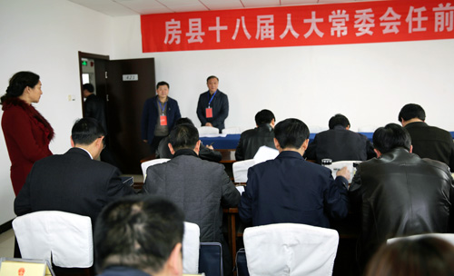 房县新闻网讯 通讯员 王万军 报道:3月6日,县人大常委会对拟任命的25名提请县十八届人大常委会第一次会议任命的地方国家机关工作人员进行集中任前法律知识考试。县人大常委会党组书记、常务副主任高明哲、副主任胡维英、谢永翔、李相明巡视考场。