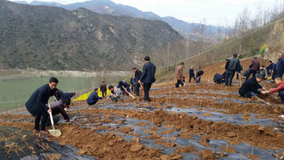 房县新闻网讯 通讯员 郑舒鑫 戢德智 报道:3月14日下午,姚坪乡组织全体机关干部、乡直单位职工、部分农户代表共40余人在姚坪村一组栽植矮化密植银杏树苗5000余株。植树活动现场,铺地膜、打窝、下苗、填土等工序井然有序,呈现出一派热火朝天的场景。