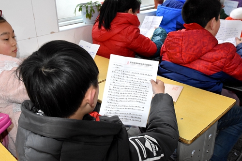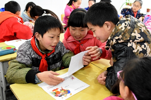 同学们互相分享着同龄朋友的情谊和问候,并且纷纷拿起手中的笔来进行回信,有的孩子还准备制作一些有益的小卡片来送给东风22小学的朋友。