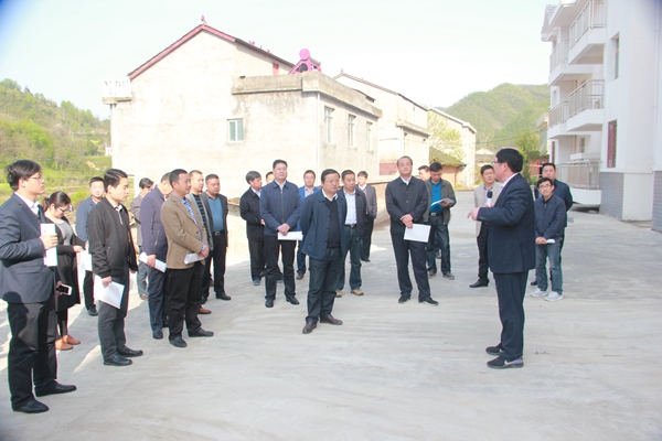 与会人员观摩门古寺镇红星村易地扶贫搬迁工程建设
