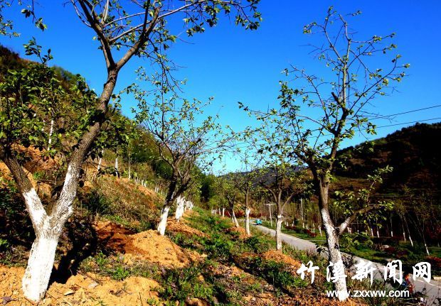 据了解,该镇果廊以明家梁村土地梁、兵营口两地为主,选取多品种、多方位、多角度搭配种植果树,总面积480亩。土地梁面积250亩,坡耕地以栽植樱花为主,农户房屋周边、田间地头栽植黄栌;兵营口面积230亩,以栽植海棠为主,农户房屋周边、田间地头栽植黄栌、梨树等。该镇共在水天路兵营段沿线栽植柿、桃子、枣、樱桃、核桃等果树苗木成活率达100%。现已建成果廊500亩,共栽植以核桃、甜柿、水蜜桃、冬枣、樱桃为主的果木25344株,分布在水天路兵营段沿线,全长9.5公里,此时“果廊”花开正艳,在境内泉河两岸形成了“花果山”,花开争艳惹人醉。