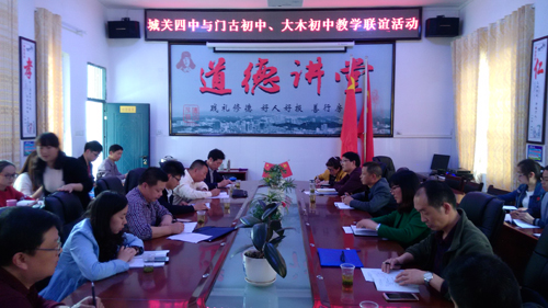大木、门古初中一行来到城关四中,观看校园文化建设,了解学校管理后,他们对城关四中校园文化建设、教育改革发展等方面给与肯定。
