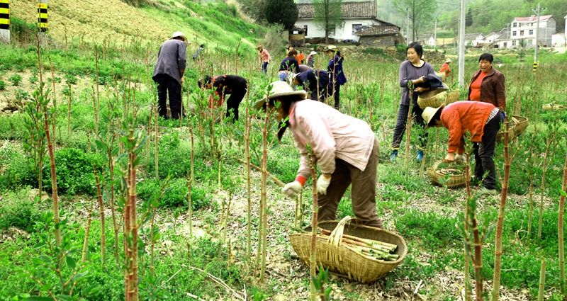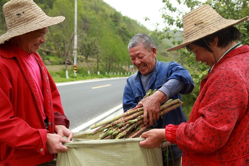 房县新闻网讯 记者 孙国 报道:19日,在房县土城镇龙坪村的虎杖种植基地,工人们忙着采摘虎杖薹(黄芽杆),装袋上车,运往武汉。
