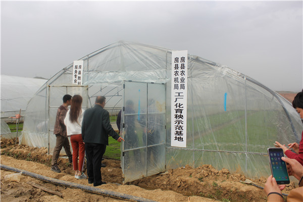 房县新闻网讯 通讯员 刘林 报道:4月19日,笔者在房县红塔镇朱湾村胜利农机服务专业合作社工厂化育秧示范基地现场看到,育秧棚里的水稻秧苗生长的青翠碧绿,技术专家现场指导水稻集中育秧的土壤消毒、种子处理、水分管理、肥料运筹、室内温度、病虫防治等知识。