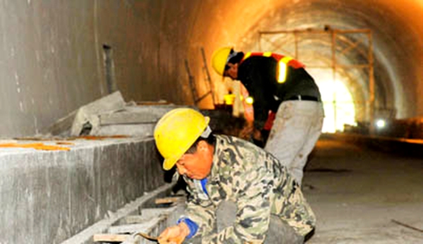 工人正在对隧设施进行配套完善