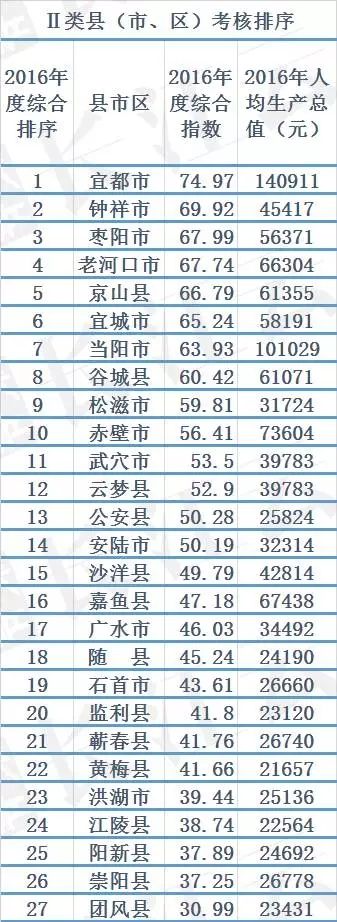 对于县域经济工作的考核并不只看GDP,根据2016年湖北省委办公厅、省政府办公厅联合印发的《关于完善县域经济工作考核的意见》,湖北将24个县级市、39个县、17个参照县级管理的区,共计80个单位纳入县域经济工作考核范围。这80个单位又分成三类进行考核。