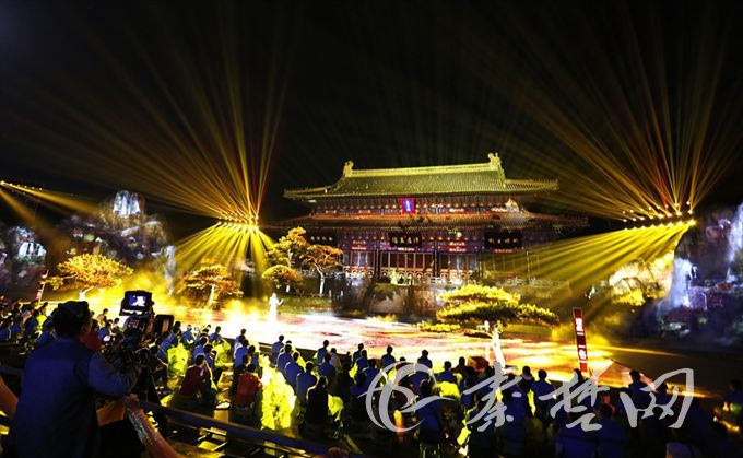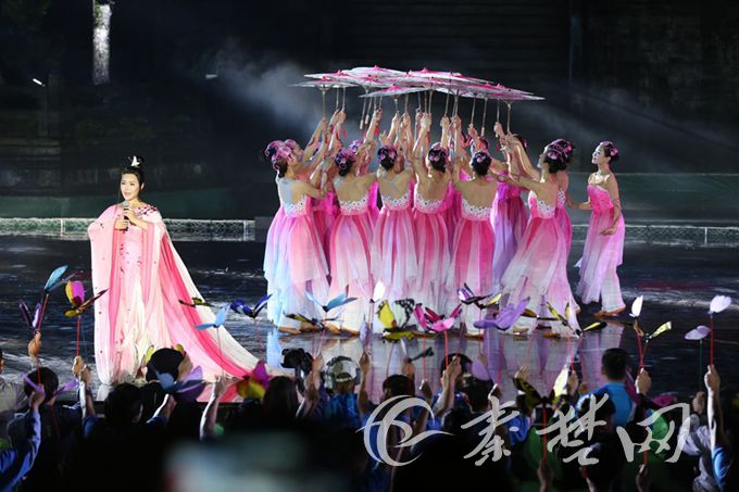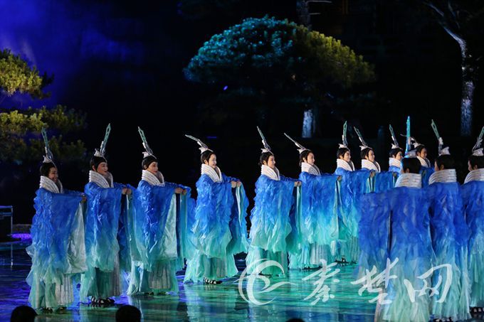 记者在现场看到,晚会以玉虚大殿为演出中心点,殿前是占地四百平米的水池,两侧环以高大错落的山形及投影。晚会采取山水实景演出方式,突破传统舞台布局,将武当山的山水文化、道家哲学以及十堰的人文历史等通过水墨动画、光影投射等国内最先进的声光电技术进行全面展现。