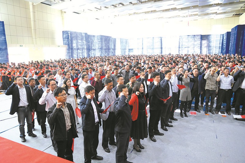 “坚决贯彻落实中央扶贫政策,不怕困难,主动作为,真情帮扶,坚决打赢脱贫攻坚战,不脱贫不收兵……”4月15日,郧阳区召开精准扶贫“四双帮扶”暨产业扶贫万人誓师大会。