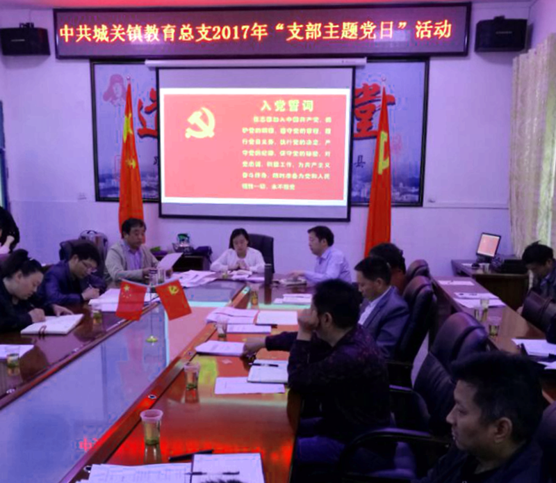 房县新闻网讯 通讯员 郑云平 丁章军 余清湖 报道: 5月11日上午,城关镇教育党总支在城关四中二楼会议室隆重召开了5月份“支部主题党日活动”。城关镇中心学校党支部全体党员参加会议,城关四中党支部、八一小学联合党支部、天明小学联合党支部三位书记应邀参加会议,其它12所中小学校长列席会议。城关镇党委委员王艳出席会议,并作党建工作现场培训。