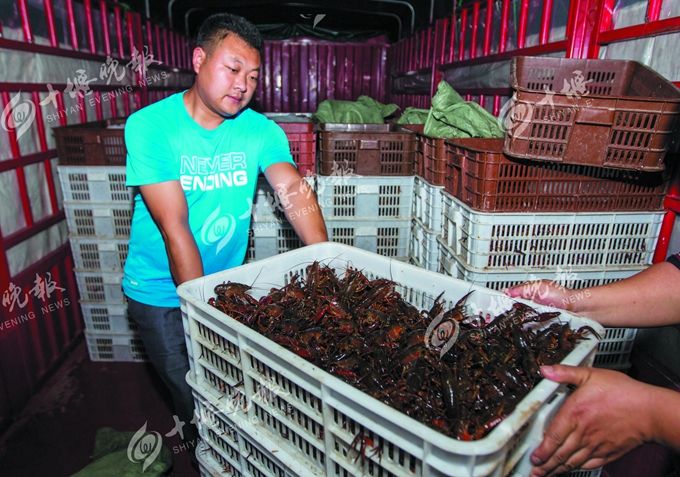 众民水产贸易有限公司负责人田先生从事小龙虾批发生意已有10个年头,该公司小龙虾供应量约占城区的四分之一,老虎沟市场的一半。“3月份小龙虾就开始上市,到5月份已经是上市的旺季。”田先生介绍,目前,城区每天小龙虾供应量为4万斤,而往年同期则是1万斤左右。他这次采购的1万余斤小龙虾到达老虎沟市场,经多次分销,将成为市民盘中美味。
