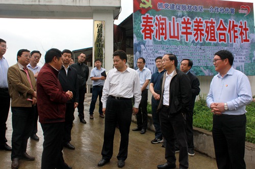 蔚盛斌一行首先来到门古寺镇项家河村,实地察看了林药、烟叶、山羊产业发展情况,查阅了基层党建资料,并就抓党建促脱贫攻坚工作与镇村干部进行了交流。蔚盛斌对该村通过村支部、合作社、大户、党员“四带”模式组织村民发展产业等做法给予了肯定。他鼓励村书记方必春,要继续当好村民致富的“领头雁”,发挥好基层党组织核心引领作用,立足本地资源优势,做大做强特色农业产业,不断夯实产业脱贫基础。