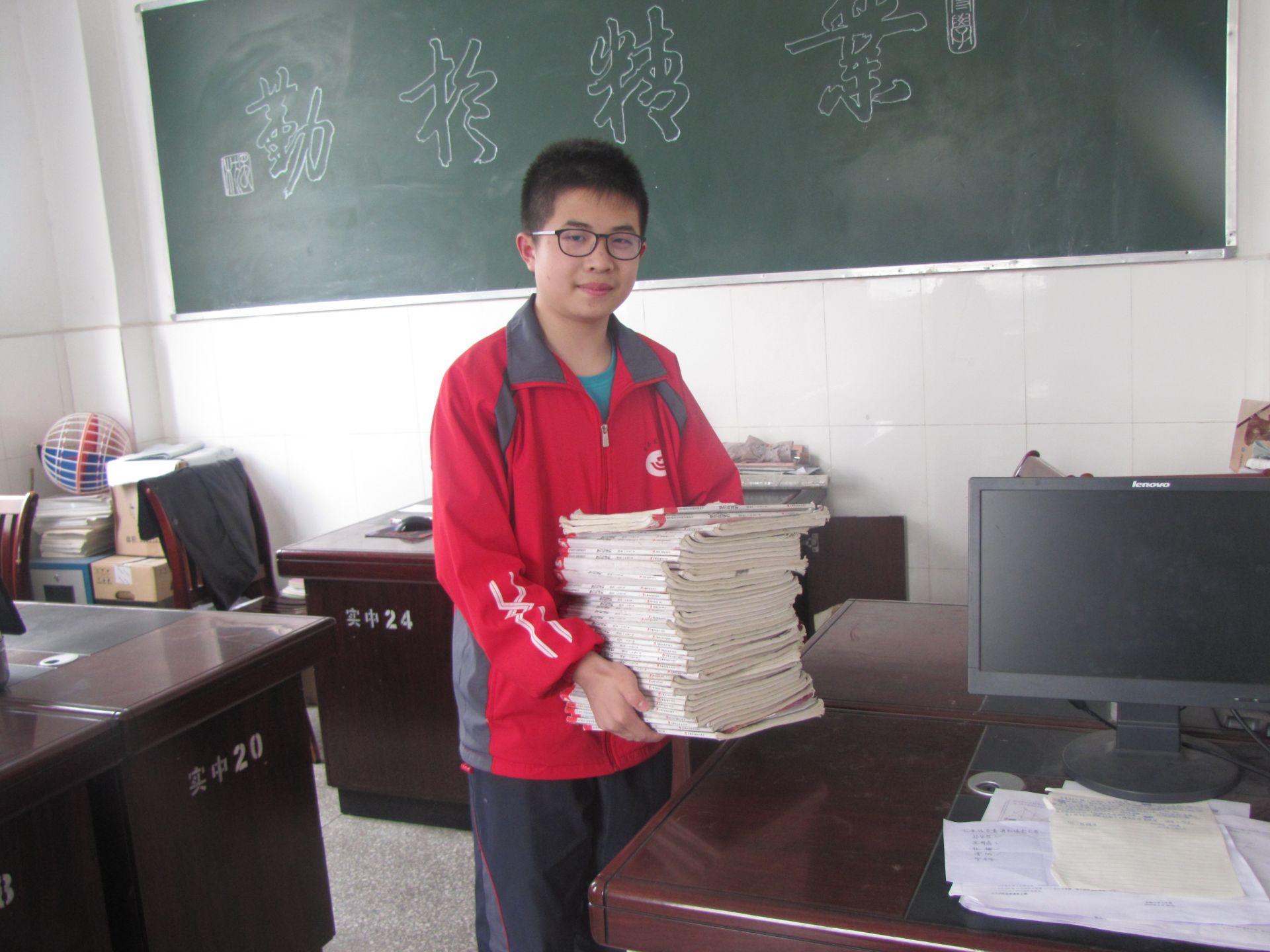 他常说:“作为一名数学课代表,不仅要自己带头扎实学习,还要成为老师的好帮手,同学们的小老师。”他是这么说的,也是这么做的。作为小组长,他总是热心的帮助学习有困难的同学,利用课余时间为他们挑选习题,解答数学难题,查找学习中存在的问题,老师称他“小老师”,同学叫他“学霸哥”。因为他工作负责,成绩优异,多次被学校评为“优秀学生”和“优秀学生干部”。