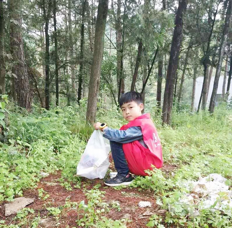建设大美房县,还原美丽风景,在房县大爱义工组织的环保公益行动中,他手系绿丝带,身携塑料袋,遇到他人丢弃的矿泉水瓶、纸巾、零食包装袋等都会随手把它们拾起放进袋子里,每装满一袋垃圾,他都会自豪地说:“再拿一个袋子来,要大的!”随行叔叔阿姨无不对他伸出大拇指。他对小伙伴们说:“看到被自己清理干净的土地,有一种说不出的轻松和愉悦!”这也许就是小义工张书涵心中人与自然的和谐之梦吧!