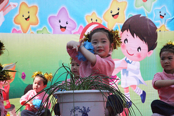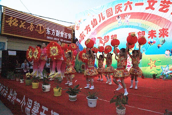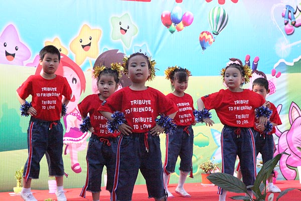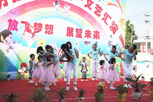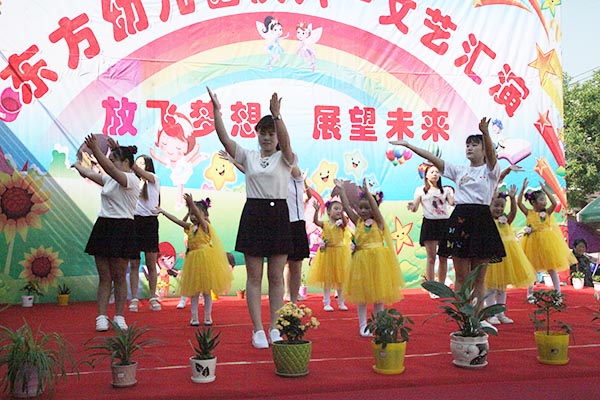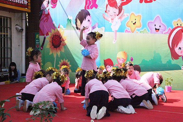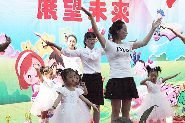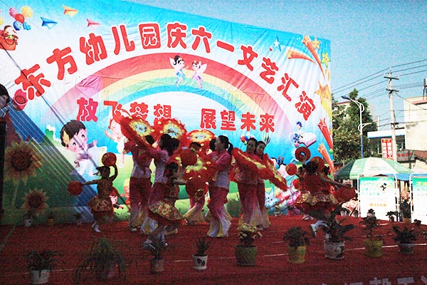 演出在教师和幼儿一起表演的《中国喜洋洋》中拉开了帷幕,小班幼儿为大家展示了《小闹钟》、《大王叫我来巡山》等节目。从襁褓婴儿到牙牙学语,妈妈们笑中带泪,看到了孩子们的成长。《可爱颂》、《让爱住我家》及《敲咚咚》这些亲子节目,拉近了孩子与家长的距离,让孩子们在家长的怀抱中茁壮成长。最后东方幼儿园全体教师为大家献上舞蹈《舞之恋》,青年教师舞姿婀娜、多才多艺,正是有了她们,祖国的花园才更加艳丽。