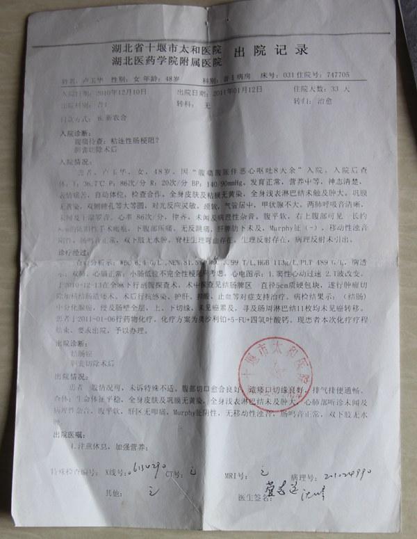卢玉华的出院记录