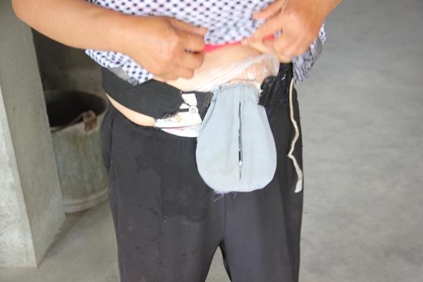 为了省钱,卢玉华用保鲜袋代替了医用粪袋