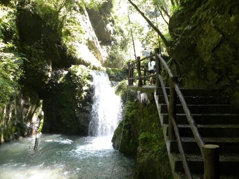 急流挖掘出一个又一个的岩屋,在这人迹罕至的岩屋群中,成了野山羊、麇, 鹿,獐,犰 天然的避难 场所。一个又一个的绿菌深潭的岩洞石窟,成为远古活化石,娃娃鱼理想的栖息地。