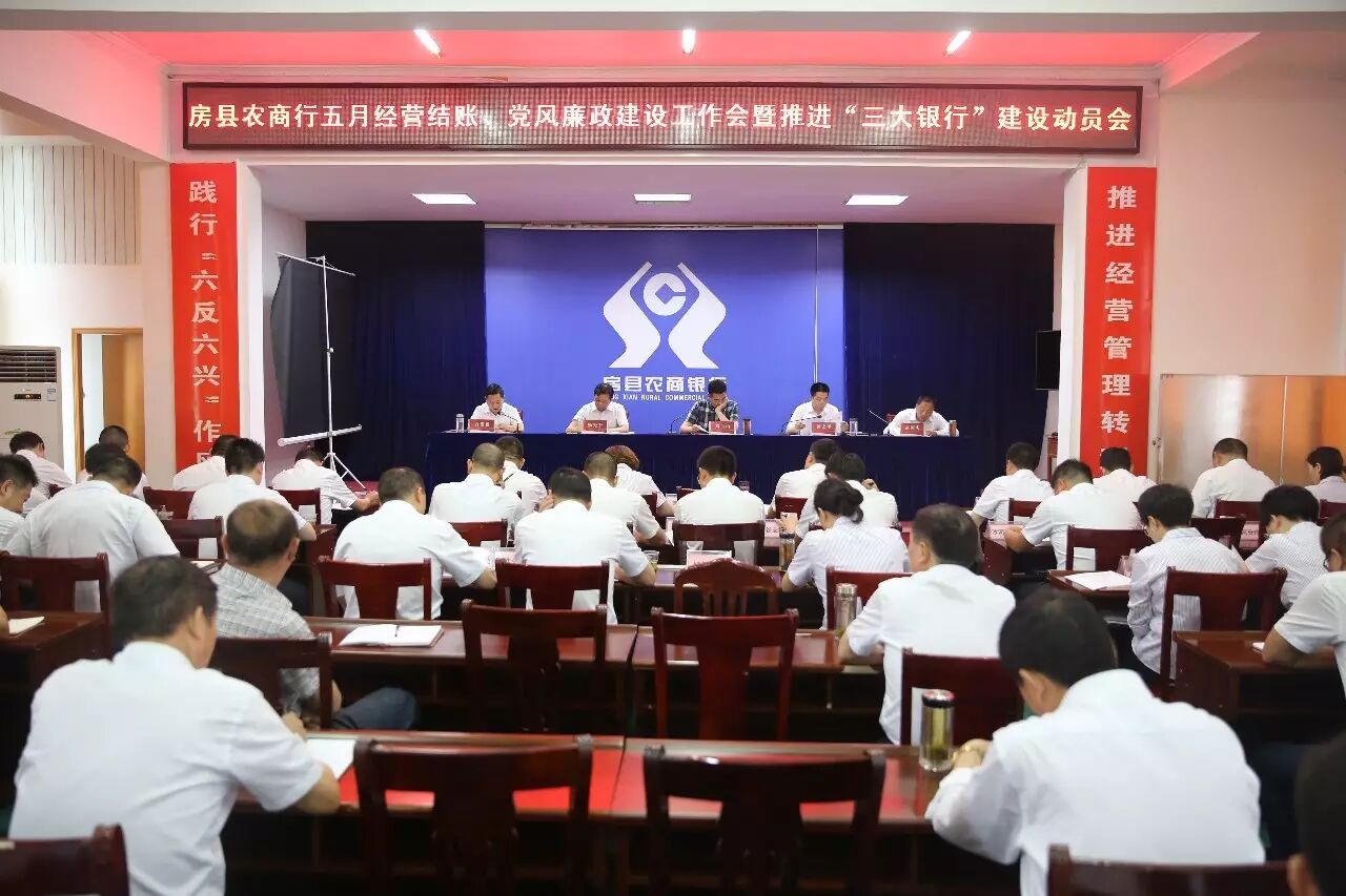 为全面传达贯彻省、市行社重要会议精神及打造“三大银行”的相关重要指示,总结5月份经营情况,部署下阶段工作任务,6月9日上午,房县农商行5月经营结账、党建工作会暨推进“三大银行”建设动员会在县行7楼会议室召开,行领导班子、各支行及分理处负责人、机关全体等150余人参会。
