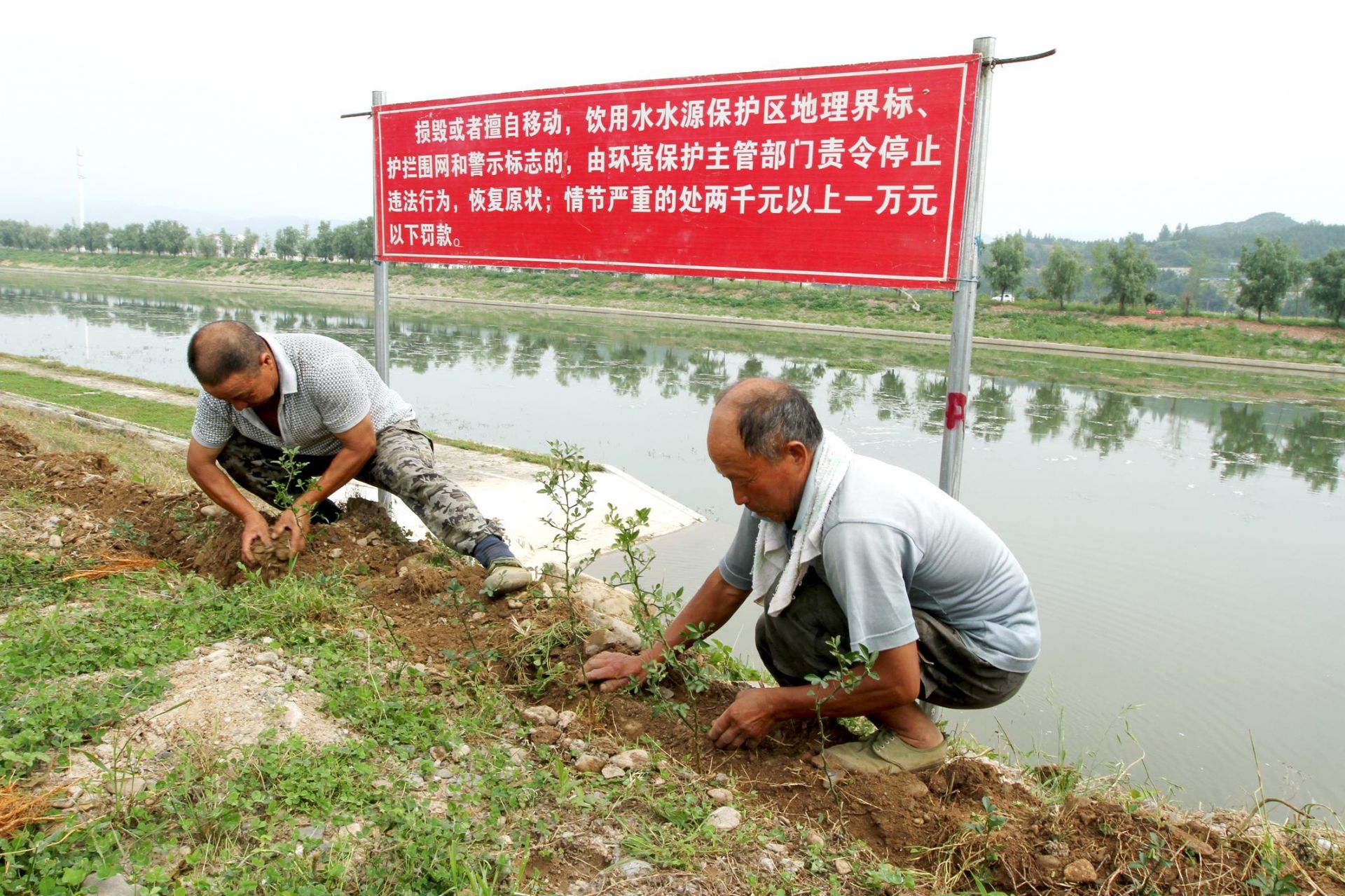 房县新闻网讯 通讯员 张启龙 报道: 6月19日,技术人员在房县城区泉水湾水厂新水源区取水口河堤育植绿色植物隔离带。当地城区马栏河张家湾至军店段被列入一级饮用水源区,是城区30万人口的饮用水“水缸”。为确保水源区河水清澈干净,县水务局重拳治理,在沿河两岸安装监控探头,培植湿地植物带,绿化植物隔离墙,预防在饮用水源区放牧、洗衣、垂钓等污染水环境的事件发生。