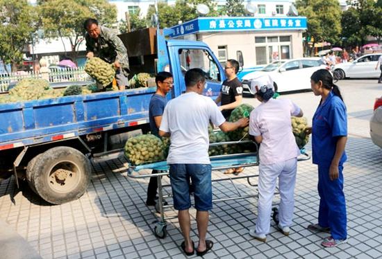 房县新闻网讯 通讯员 裴中东 屈振坤 报道: 6月28日上午,在县人民医院门诊广场停靠的一台农用车旁边人头攒动,大家都在抢购洋芋,场景热闹,引得前来就诊的患者和路人好奇围观。原来医院精准扶贫驻村工作队正在这里设立销售点,为野人谷镇马里村贫困户马富贤销售高山洋芋。短短两个多小时, 3000多斤77袋洋芋以每袋32元的价格被医院职工认购,还有无法销售的9袋小洋芋也被帮扶科室医院感染科全部购买。