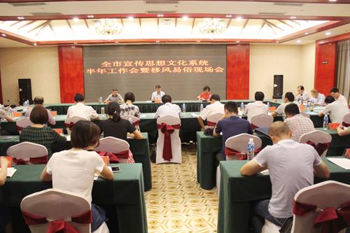 房县新闻网讯 通讯员 孙虎 报道:29日,全市宣传思想文化系统半年工作会暨移风易俗现场会在房县召开。市委常委、宣传部长周锋,县委副书记、县长纪道清,县委常委、宣传部长高勇,市直宣传思想文化单位负责人及各县、市、区宣传部长参加会议。