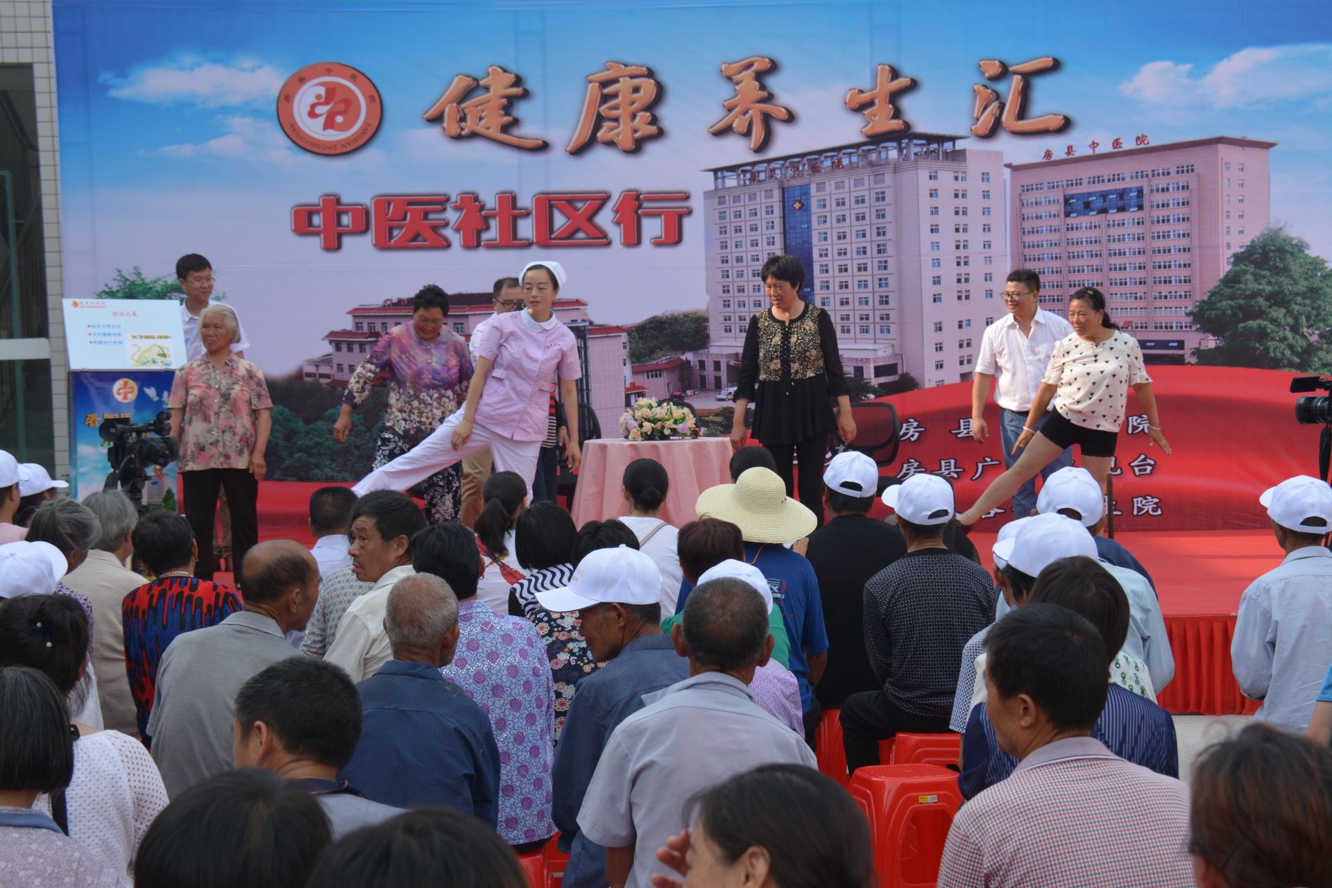 4号下午,在野人谷镇卫生院操场上,由县中医院举办的第六期“健康养生会 中医社区行”活动。让野人谷镇的老百姓在家门口就享受到了健康的养生知识和贴心的医疗服务。