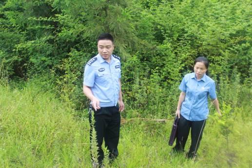 森林公安局民警汇同检察院检察官冒雨实地察看补植补种情况