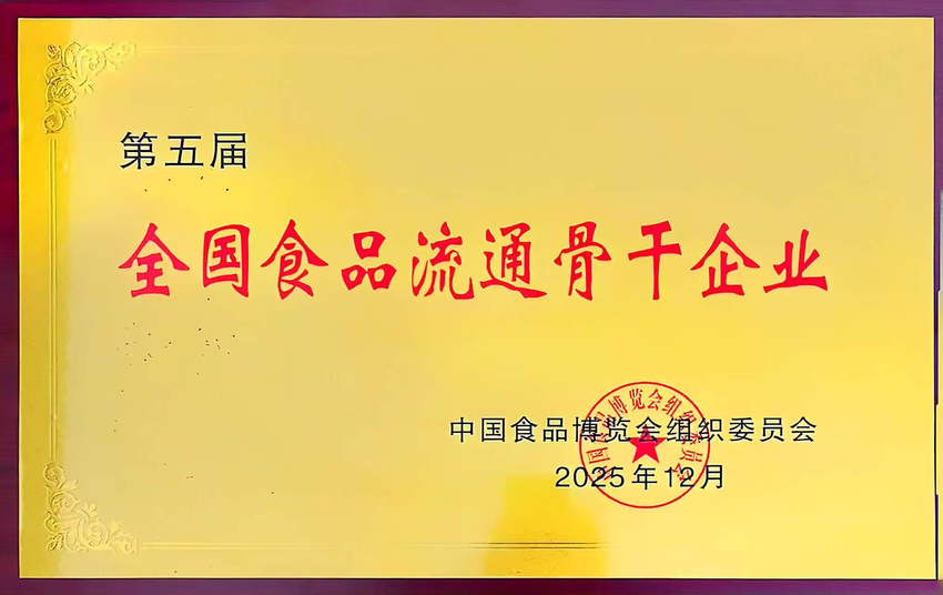 获得第五届“全国食品流通骨干企业”荣誉称号